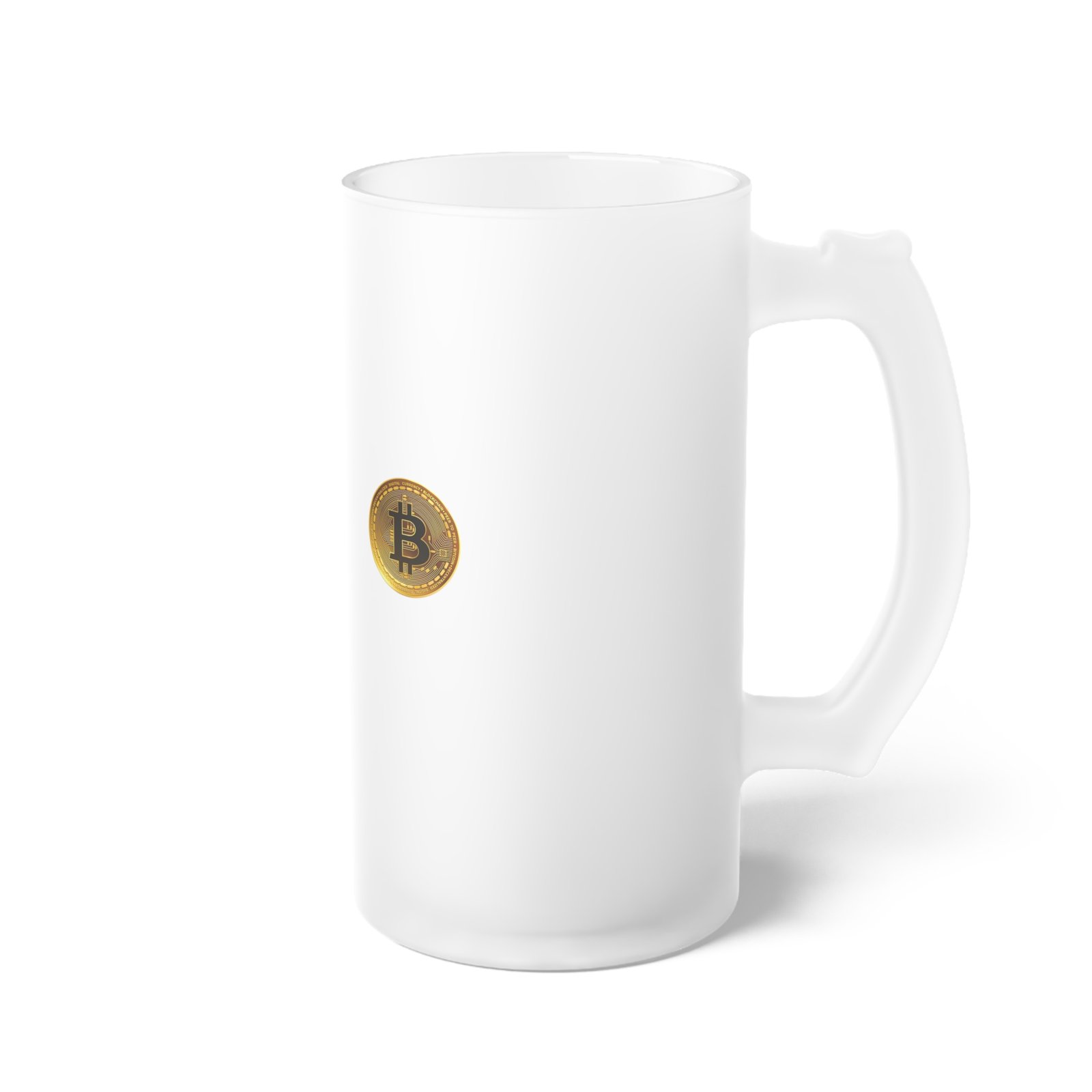 Frosted Glass Beer Mug – Bitcoin Coin Design